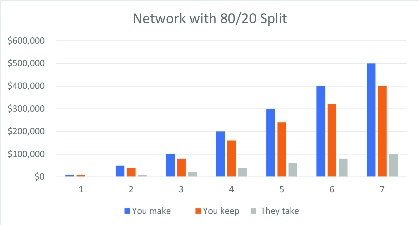 Not necessarily. While retaining 80% of your sales revenue certainly seems better than 70%, clauses like this often involve hidden costs. First consider the fees you’ll be paying on TOP of the commission, which will negate a portion of your profits. Second, you need to find out if there’s a cap on how much the network or alliance can take of your commissions in any given year.